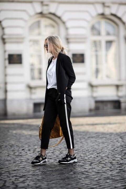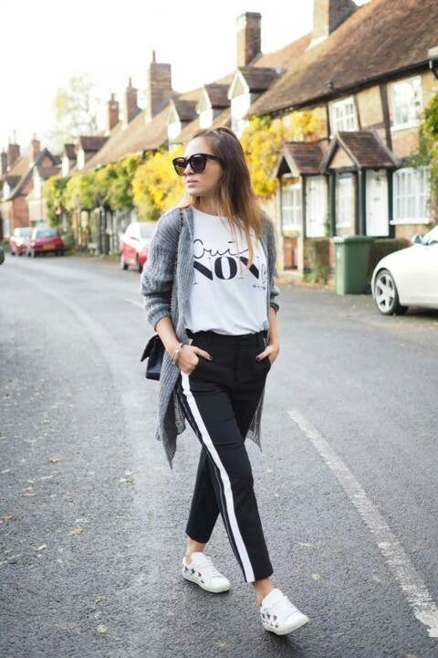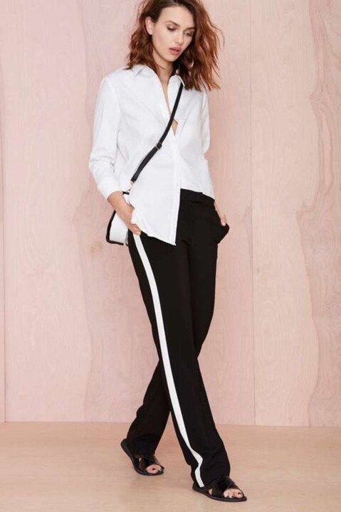 Calças pretas com risca lateral branca...