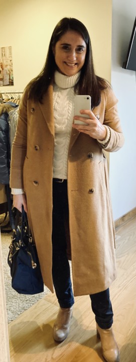 Começamos com um casaco cumprido, umas calças chino azuis, uma camisola de gola alta branca e uns botins, transformando o mesmo look para a primavera mantendo a paleta de cores trocando as peças mais qentes por umas mais leves.